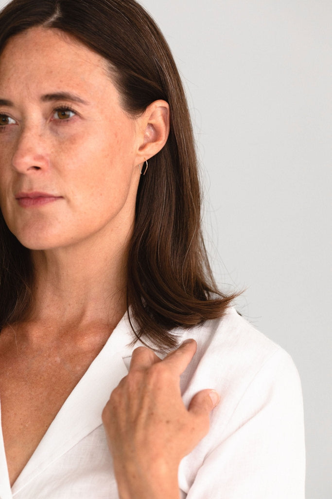 The Moab Arch Threader Earrings are a study in balance and ease. Their graceful curves, formed from a single strand of hand-shaped gold fill, hang effortlessly on both sides of the ear. Inspired by natural arches carved by time, they are a reminder to seek beauty in the natural flow of things. Lightweight and timeless, these earrings offer an effortless refinement for daily wear.