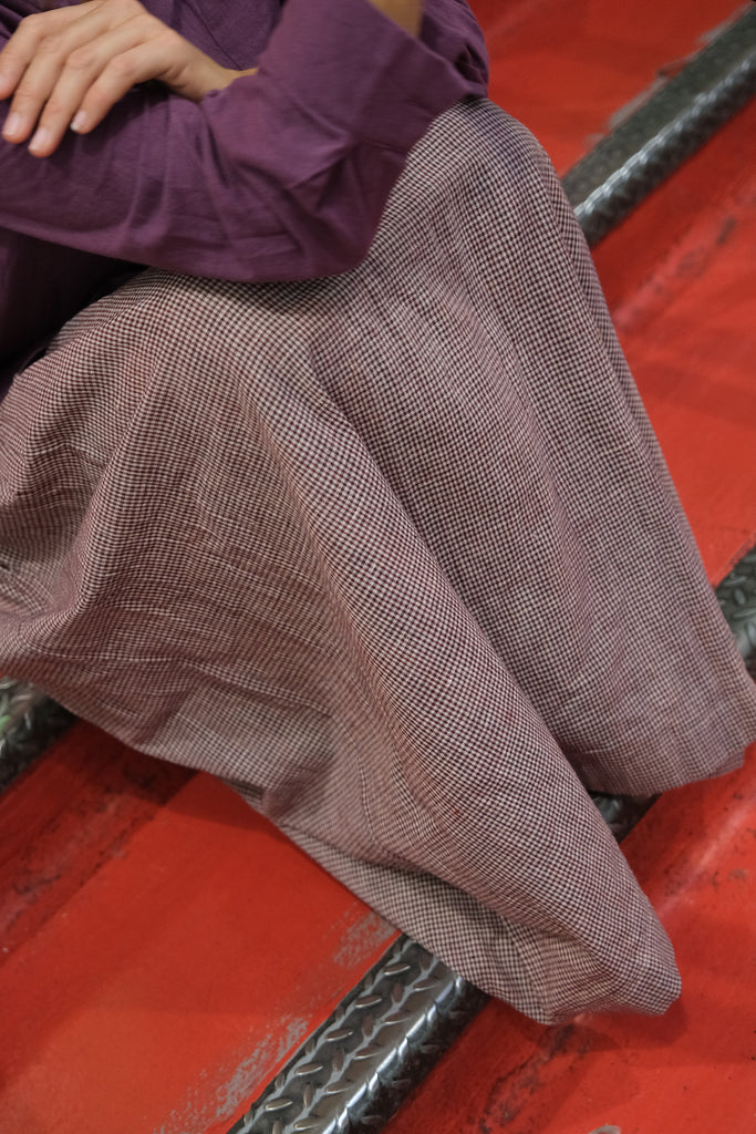 Softly gathered and full of movement, this skirt captures the quiet rhythm of everyday wear. Its minimal check pattern and fluid fall make it a timeless staple to pair with relaxed shirts and jackets.