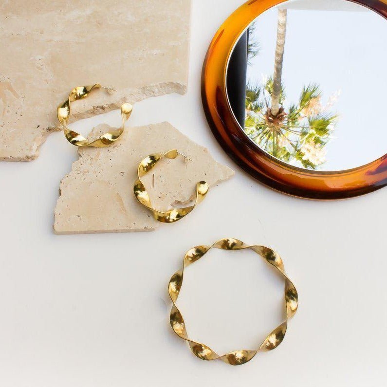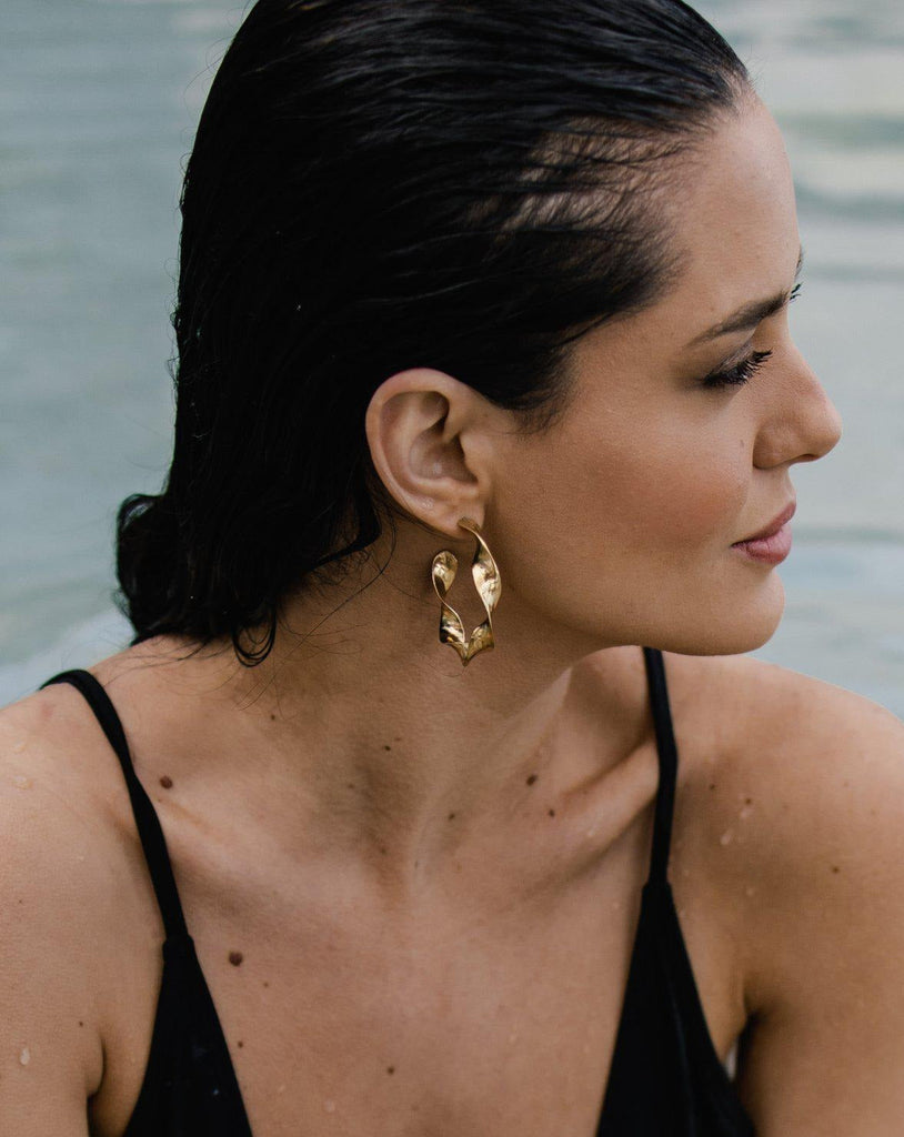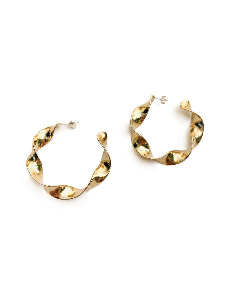 Cast brass earrings resembling a coiled ribbon. Lightweight summer staple and perfect with your hair pulled back. The handmade nature of this item means the coil may have variation.