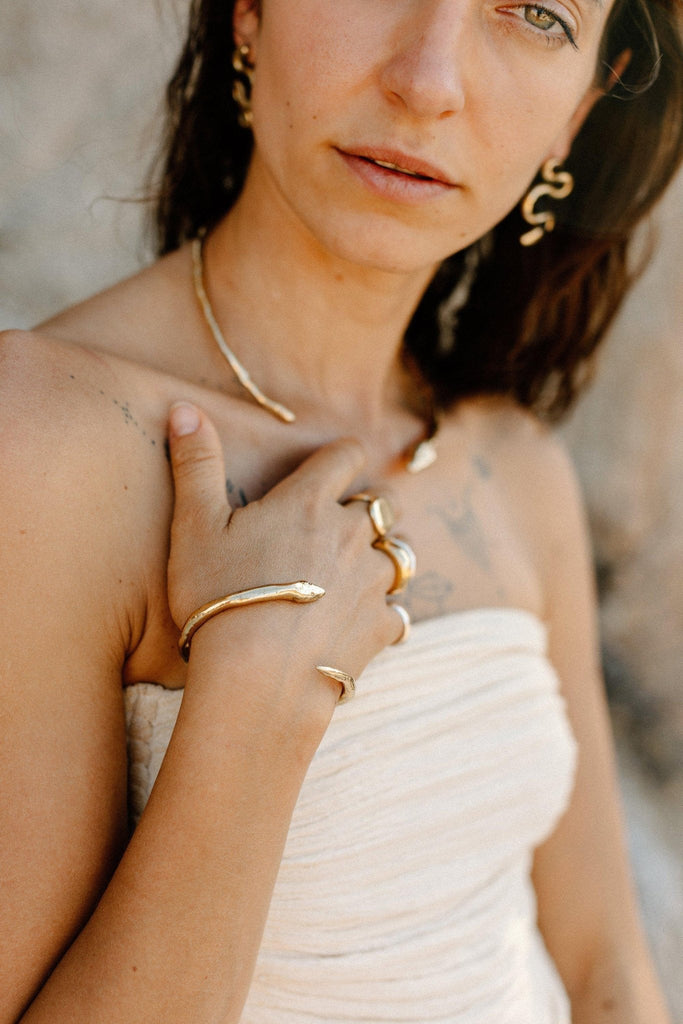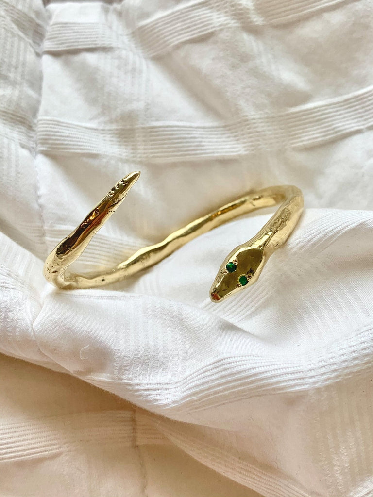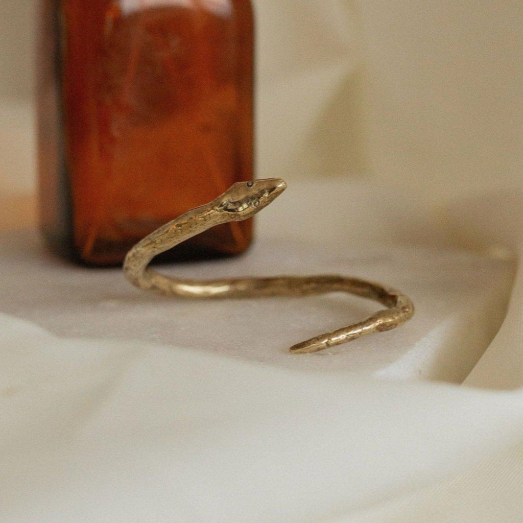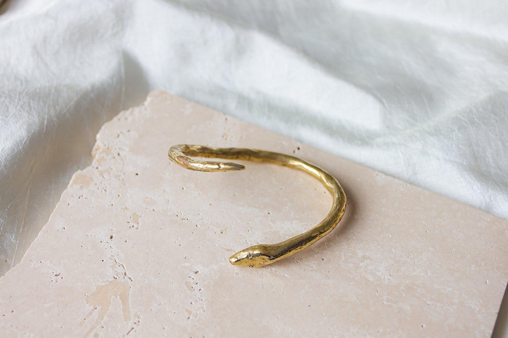 The serpent has long been a symbol of rebirth, transformation and creative life force. Our snake was first formed by hand in soft wax before being cast into beautiful recycled yellow brass. This bracelet is at once primitive, sexy & timeless. Wear it as a token of strength.