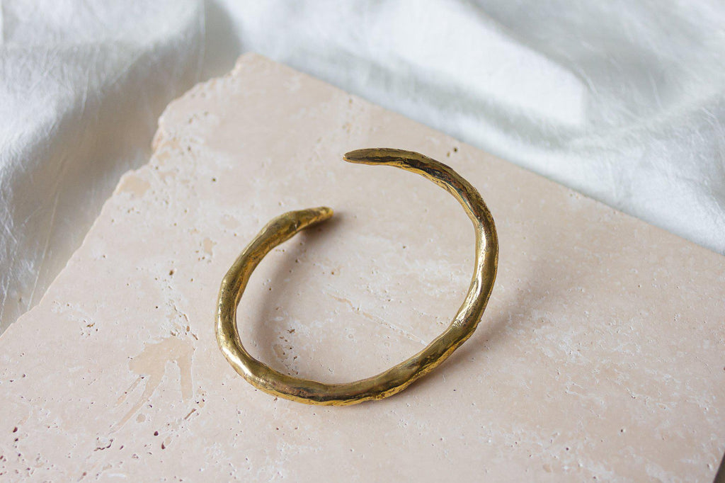 Opening can be slightly adjusted to fit around your wrist. 100% recycled USA brass. Brass bracelets are kept in stock.