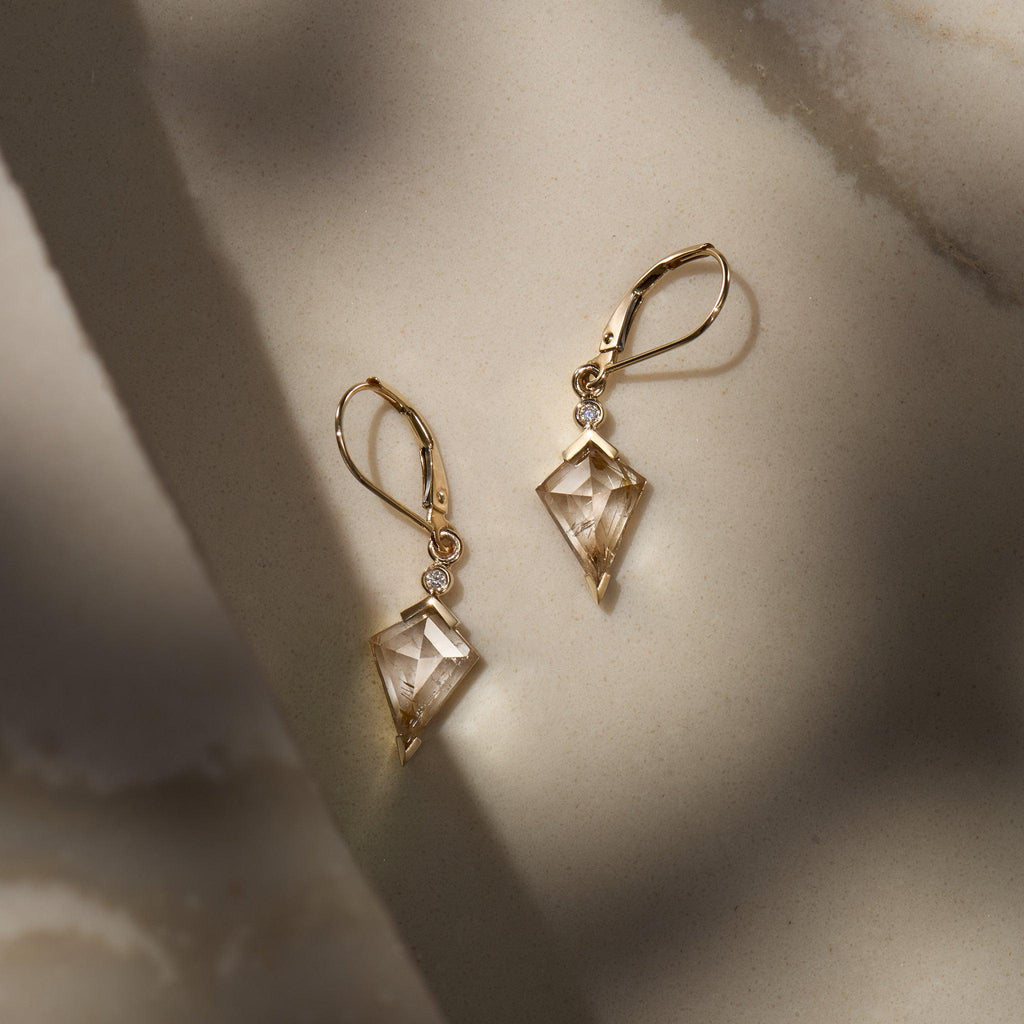 Rutilated Quartz and Diamond Kite Drop Earrings