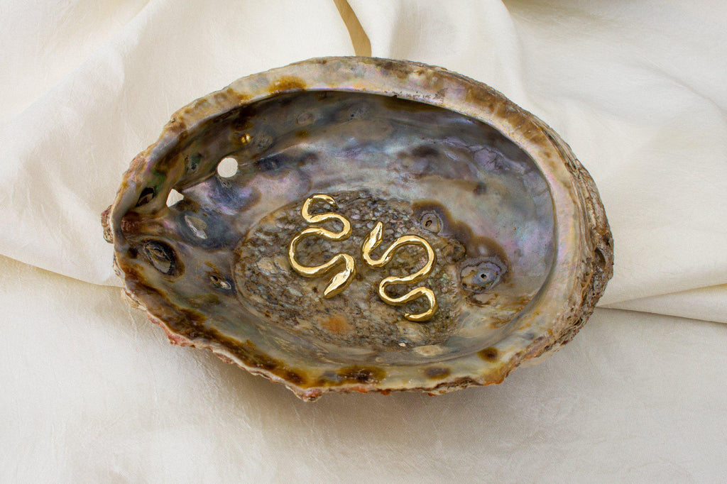 A beloved staple in our serpent collection, the Serpent’s Kiss Earrings celebrate the beauty and mystery of this powerful creature. Long associated with transformation and rebirth, the serpent is a sacred symbol for shedding the old and embracing change — a timeless theme woven into the heart of Dea Dia.