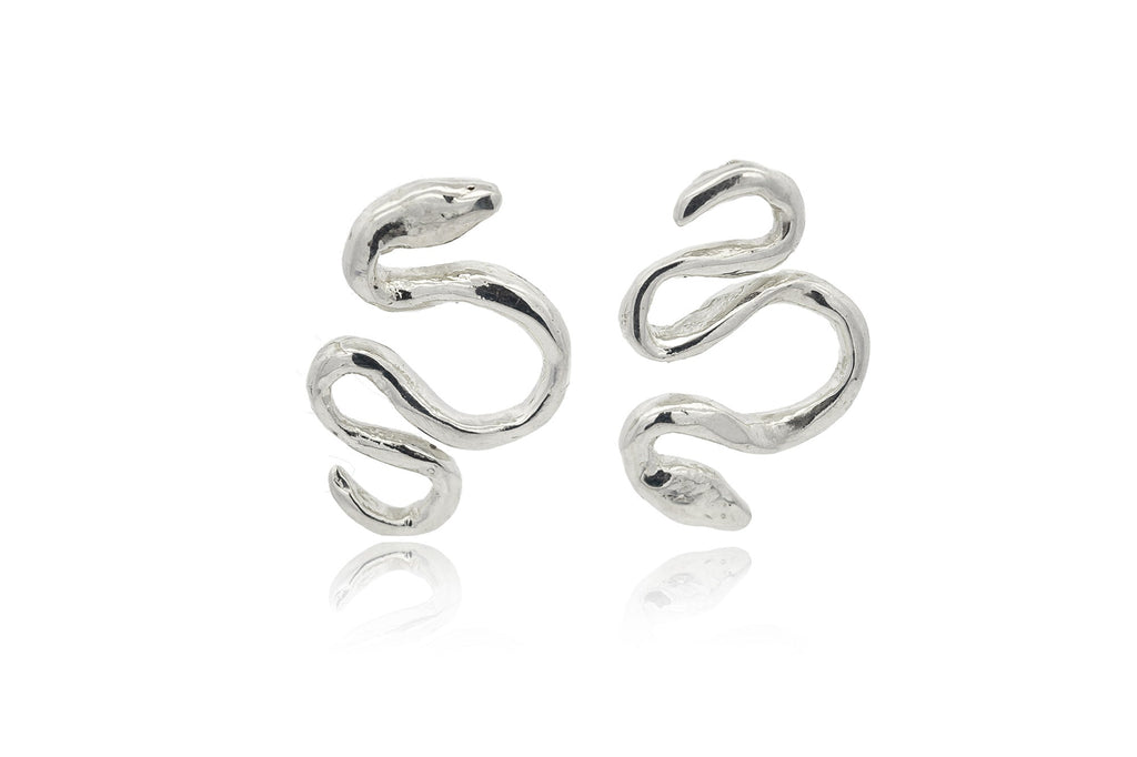 Hand-sculpted in wax & cast in recycled metals in our high desert studio, each earring is finished with sterling silver posts and backs. True to our love of the unexpected, this pair features an intentionally asymmetrical design — one post placed at the head, the other at the tail — creating a subtle edge that catches the eye.