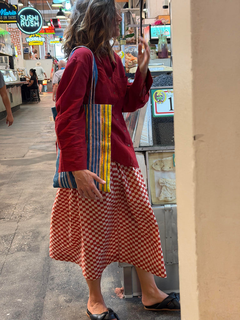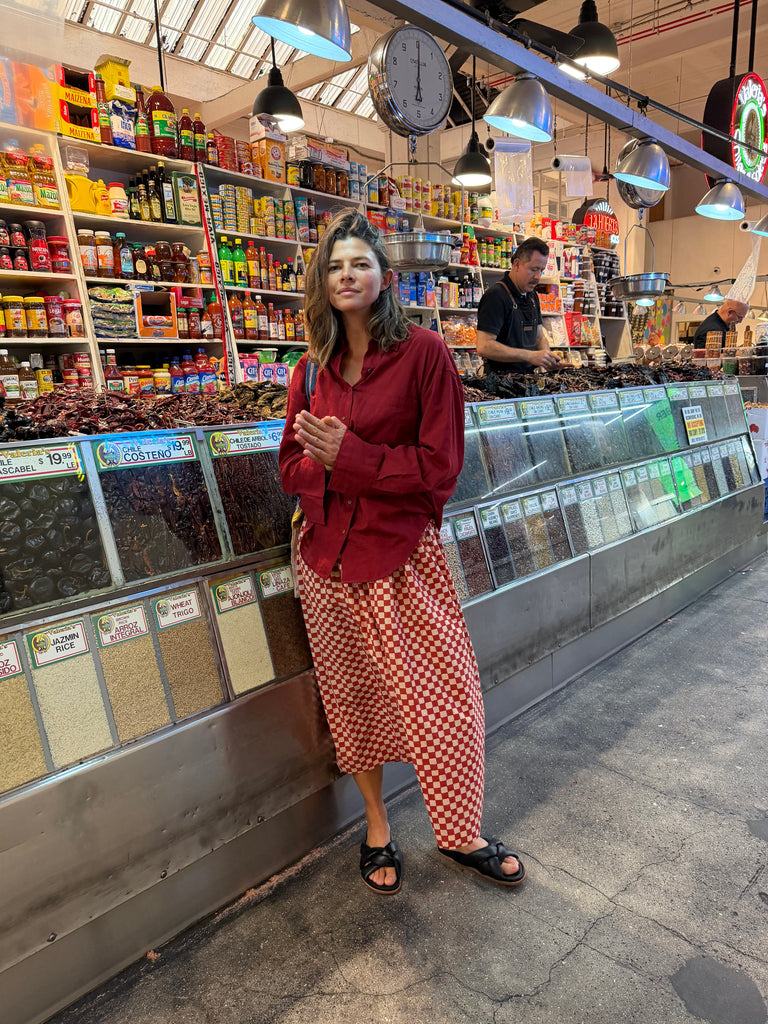 A celebration of everyday life and the beauty found in the ordinary. The Market brings together handwoven organic cotton, soft textures, and playful prints checkerboards, polkas, and earthy solids all dyed in azo-free colors.