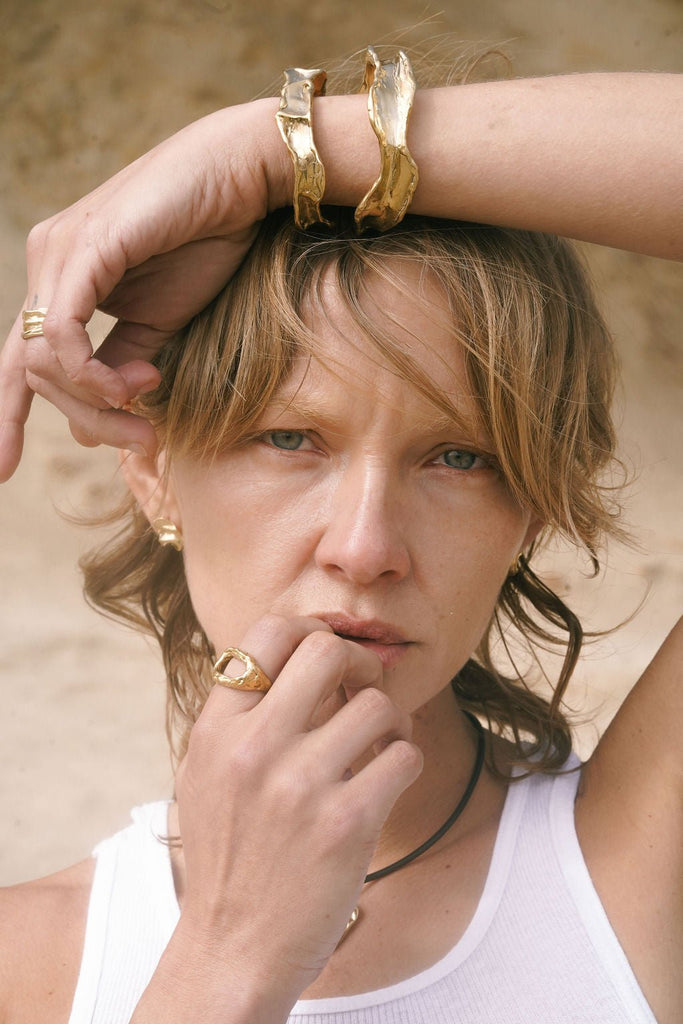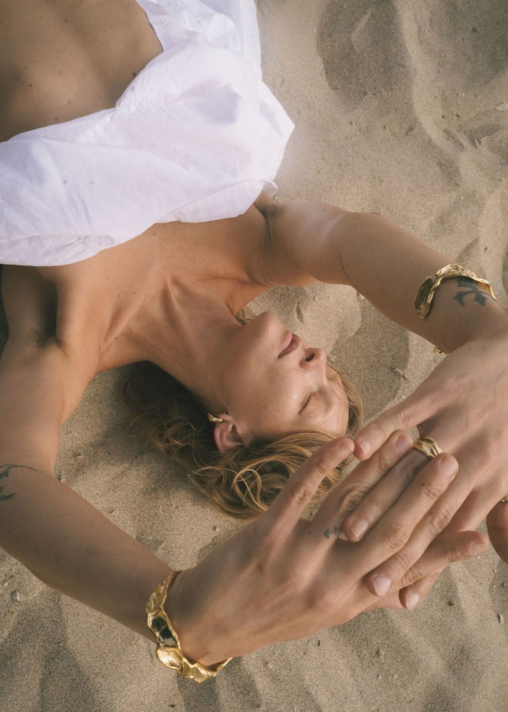 Inspired by the Nova Formation in Death Valley, known to have formed 2.5-5.3 million years ago, this gold cuff bracelet is a statement piece that let's you carry a piece of nature with you.