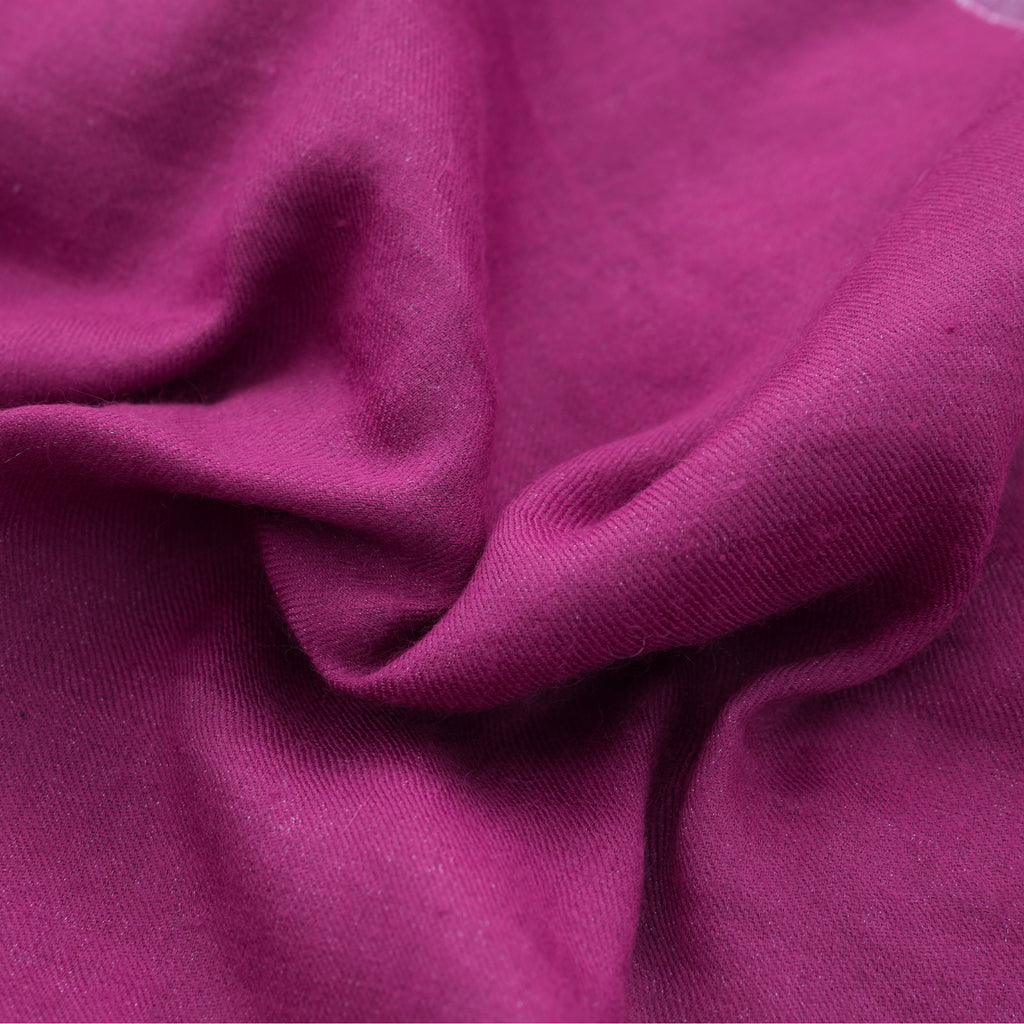 This hand woven Pashmina stole in a rich magenta-pink shade is beautifully accented with a subtle silver zari .Soft, warm, and lightweight, it combines timeless elegance with a hint of shimmer—perfect for both everyday wear and festive occasions.