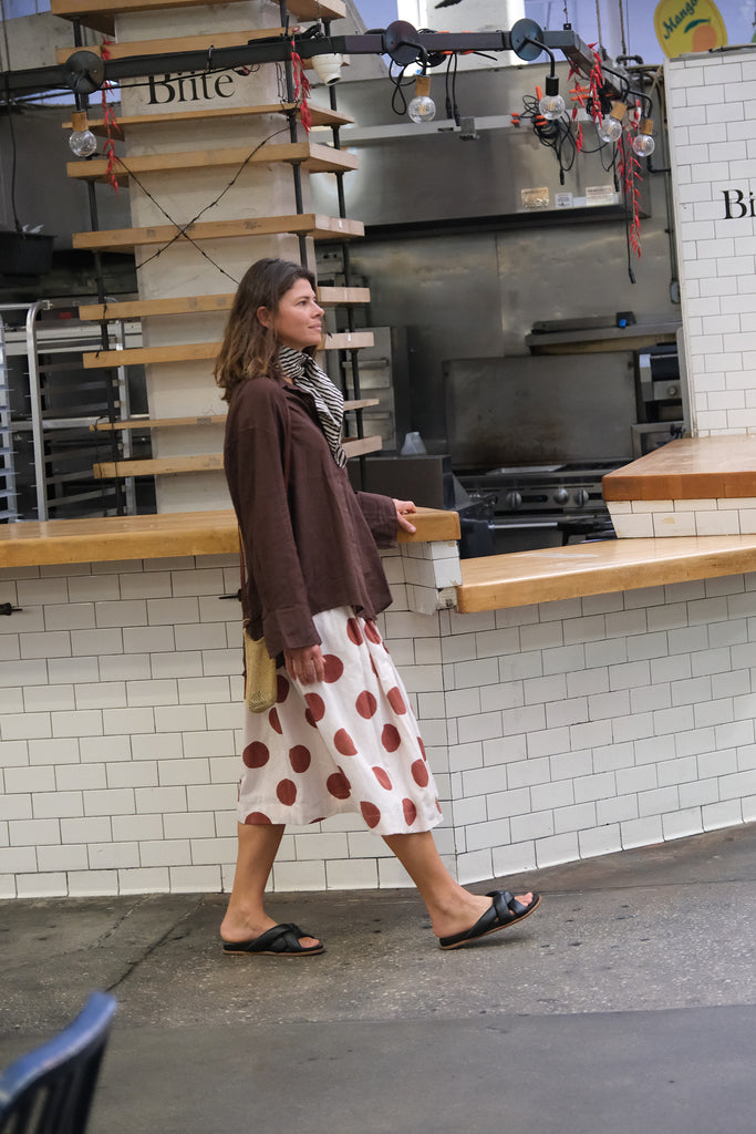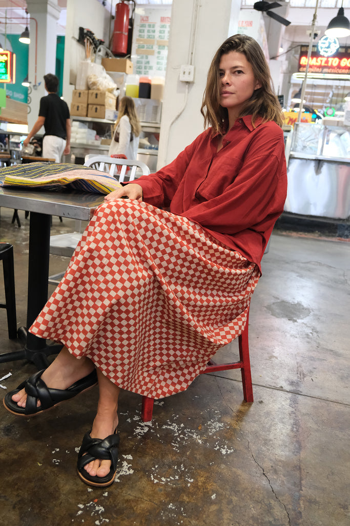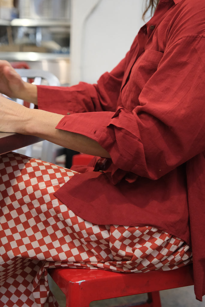 A celebration of everyday life and the beauty found in the ordinary. The Market brings together handwoven organic cotton, soft textures, and playful prints — checkerboards, polkas, and earthy solids — all dyed in azo-free colors.