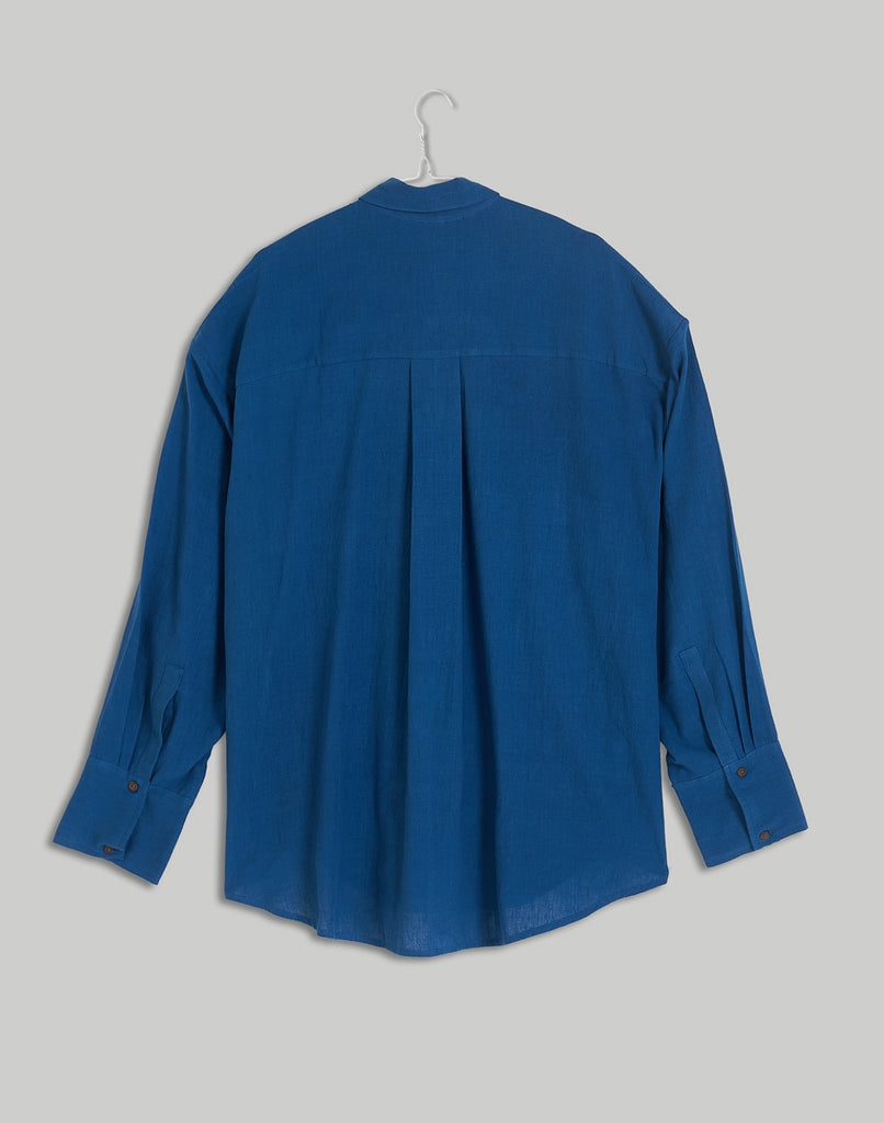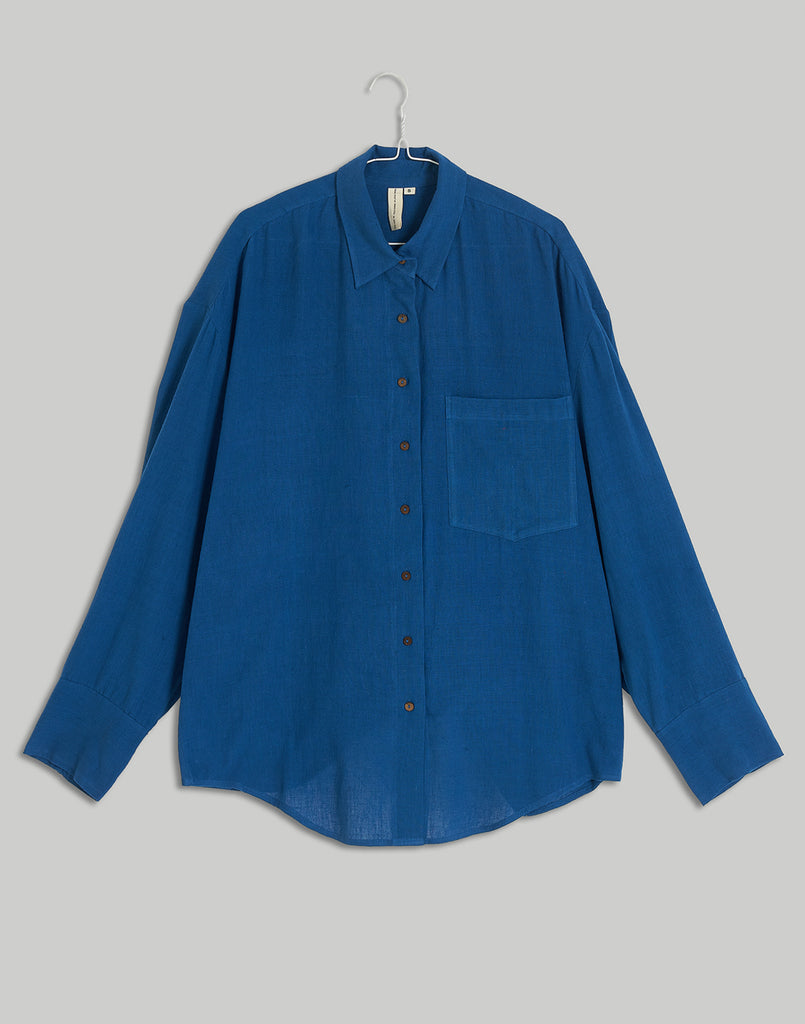 This beautiful oversized shirt is a true essential for comfortable, seasonless styling. Crafted from a lightweight, breathable organic cotton fabric, it features a classic collar, full-length sleeves, and a single patch pocket on the chest. The drop-shoulder fit and slightly oversized silhouette ensure a comfortable, fluid drape, perfect for layering or wearing on its own.