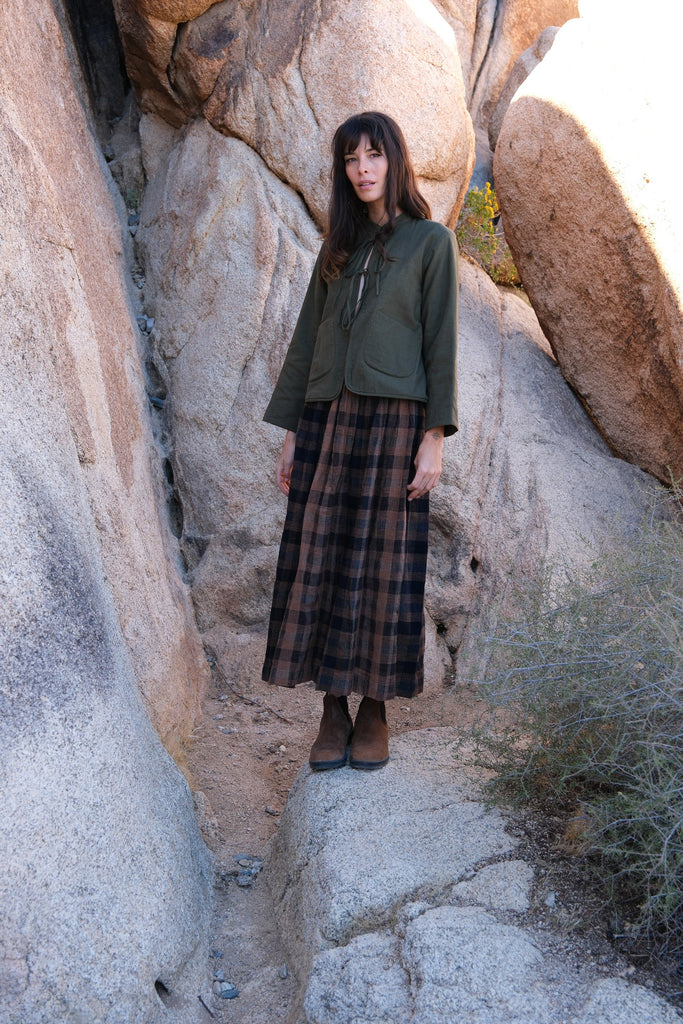 This Midi Skirt - a perfect blend of style and comfort. It features an elasticated waist for a customizable fit and a classic checkered pattern for a timeless look. It's both fashionable and practical. The checkered design adds a touch of sophistication to your ensemble, making it a versatile choice.
